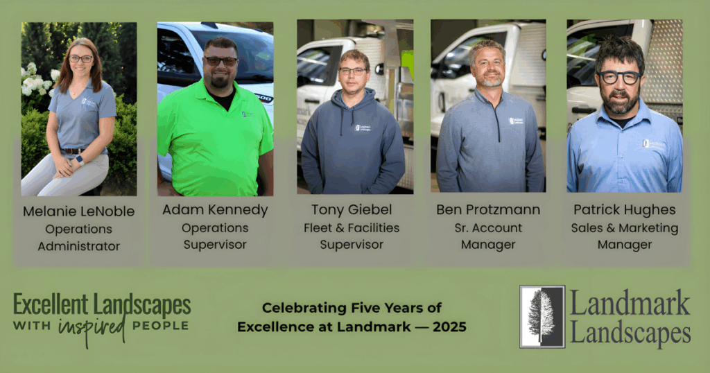 Today, as we celebrate Adam’s five years at Landmark Landscapes, we’re also celebrating the character he brings to our team—his leadership, his humility, and his commitment to helping others succeed.