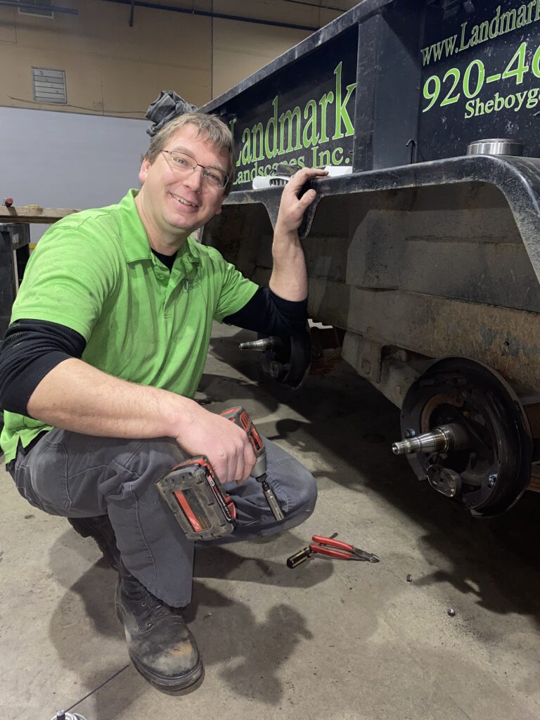 Tony first came across Landmark on Indeed.com, but it didn’t take long before he became an essential part of the team. While he had a small taste of landscaping years ago—working one summer for his uncle’s company in Chilton—he jokes that he “can’t say I was much of a landscaper.” What he did bring, however, was something even more valuable: mechanical skill, calm under pressure, and a mindset built for solving problems.