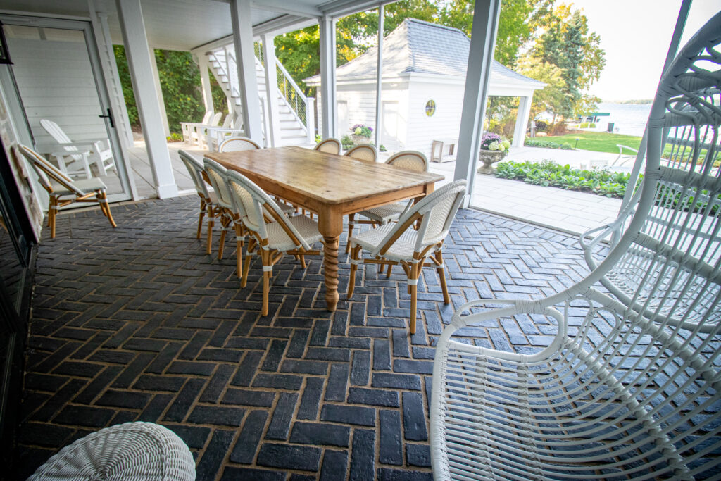 To address these challenges, the design focused on tiered outdoor rooms stepping naturally toward the lake. Materials were chosen for permanence, safety, and visual continuity. These included Unilock Natural Stone in Ivory Sand and Unilock TownHall in Basalt. Fond du Lac outcroppings and cut wall stone added regional character. St. Mary’s natural stone steps provided durable transitions between levels. Together, these materials offered dense, non-slip surfaces suited to freeze–thaw conditions. They also complemented the home’s interior finishes. Meanwhile, plantings introduced a muted, climate-resilient palette. Species included Triumph elms, Canadian redbuds, viburnum, hydrangea, shrub roses, phlox, peonies, hosta, ornamental grasses, and vinca. As a result, the landscape gained softer edges and four-season interest.